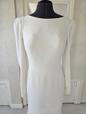 Ivory mermaid style wedding dress with long sleeves and boat neck