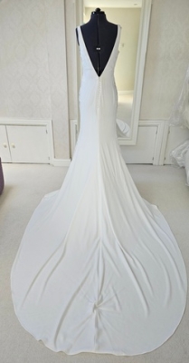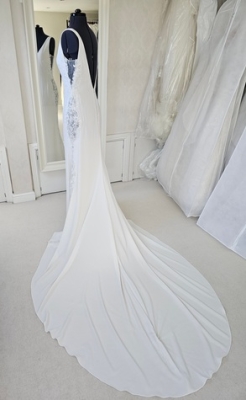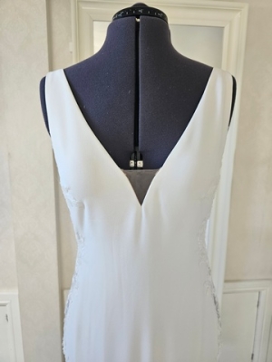 Ivory mermaid wedding dress with V neck and lace detail at the side of the dress
