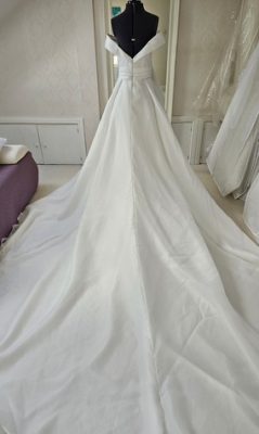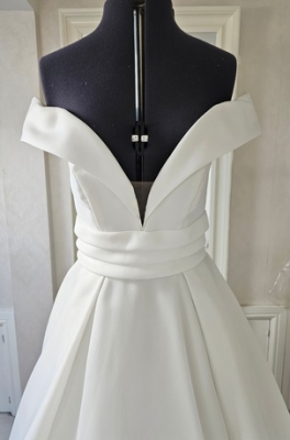 Ivory ballgown style wedding dress with off the shoulder straps