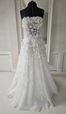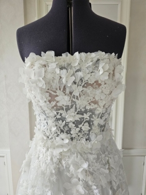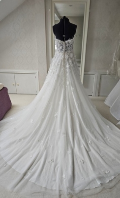 Ivory A-line wedding dress with 3D flowers